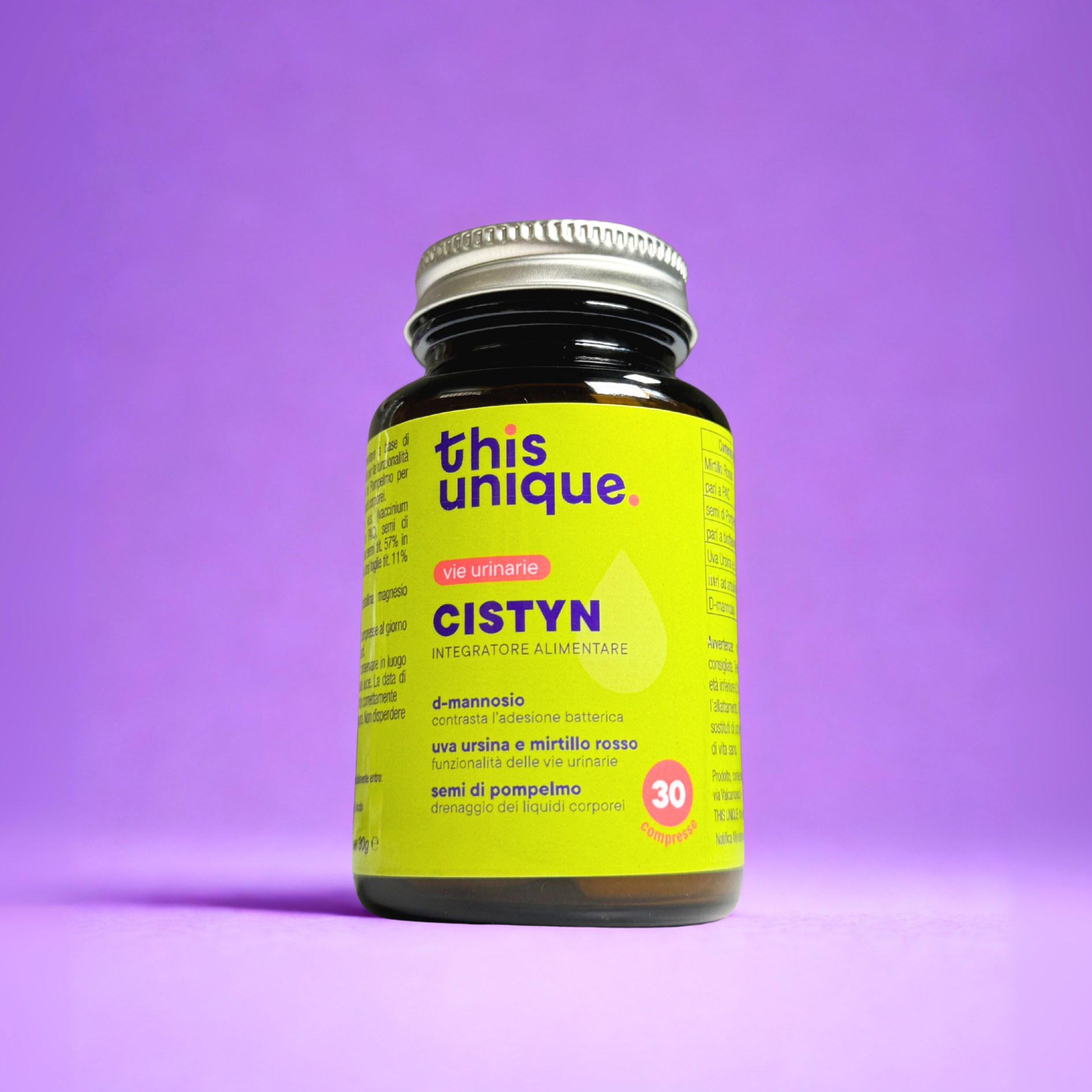 Cistyn aiuta a prevenire l’adesione dei batteri patogeni (come E. coli) alla mucosa vescicale e favorisce la loro eliminazione attraverso le urine. Ideale in caso di cistiti ricorrenti o come supporto durante i periodi a rischio.